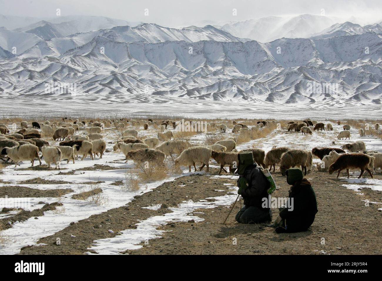 Bildnummer: 52453137 Datum: 10.03.2008 Copyright: imago/Xinhua Schafherde im Tianshan Gebirge bei Hami in der Region Xinjiang Uygur PUBLICATIONxNOTxINxCHN, Landschaft , Tiere , Personen; 2008, China, Herde, Schafherde, Schäfer, Berg, Berge, verschneit ...
