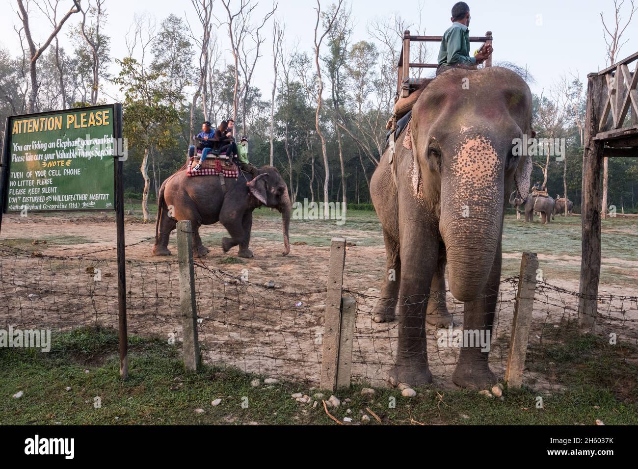 Elefantenführer wird beim Nashornzählen in Nepal von Tiger ...