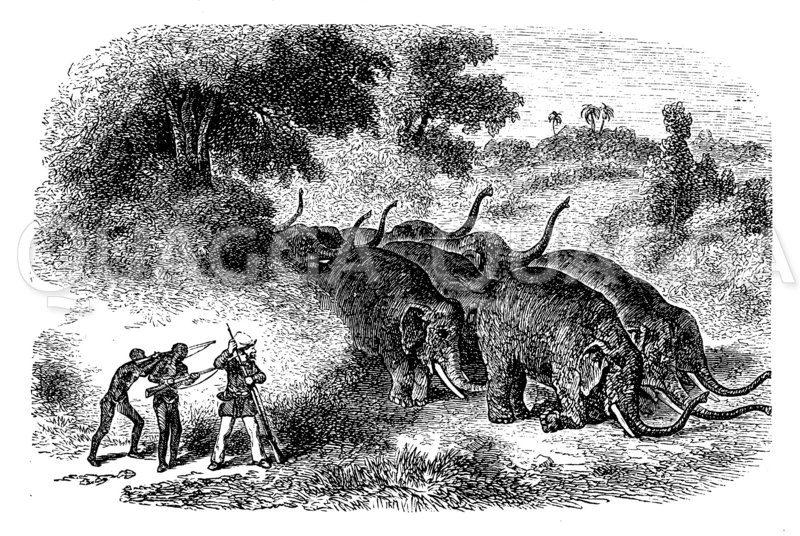 Elefantenjagd, Jagd auf Elefanten - Quagga Illustrations