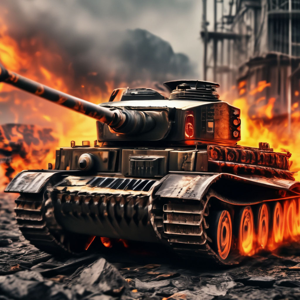 Tiger 1 в огне, разруха , пламя, , …» — создано в Шедевруме