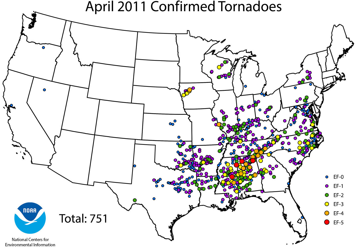 April 2011 saw tornado super outbreak with 362 in a week. Here's a ...