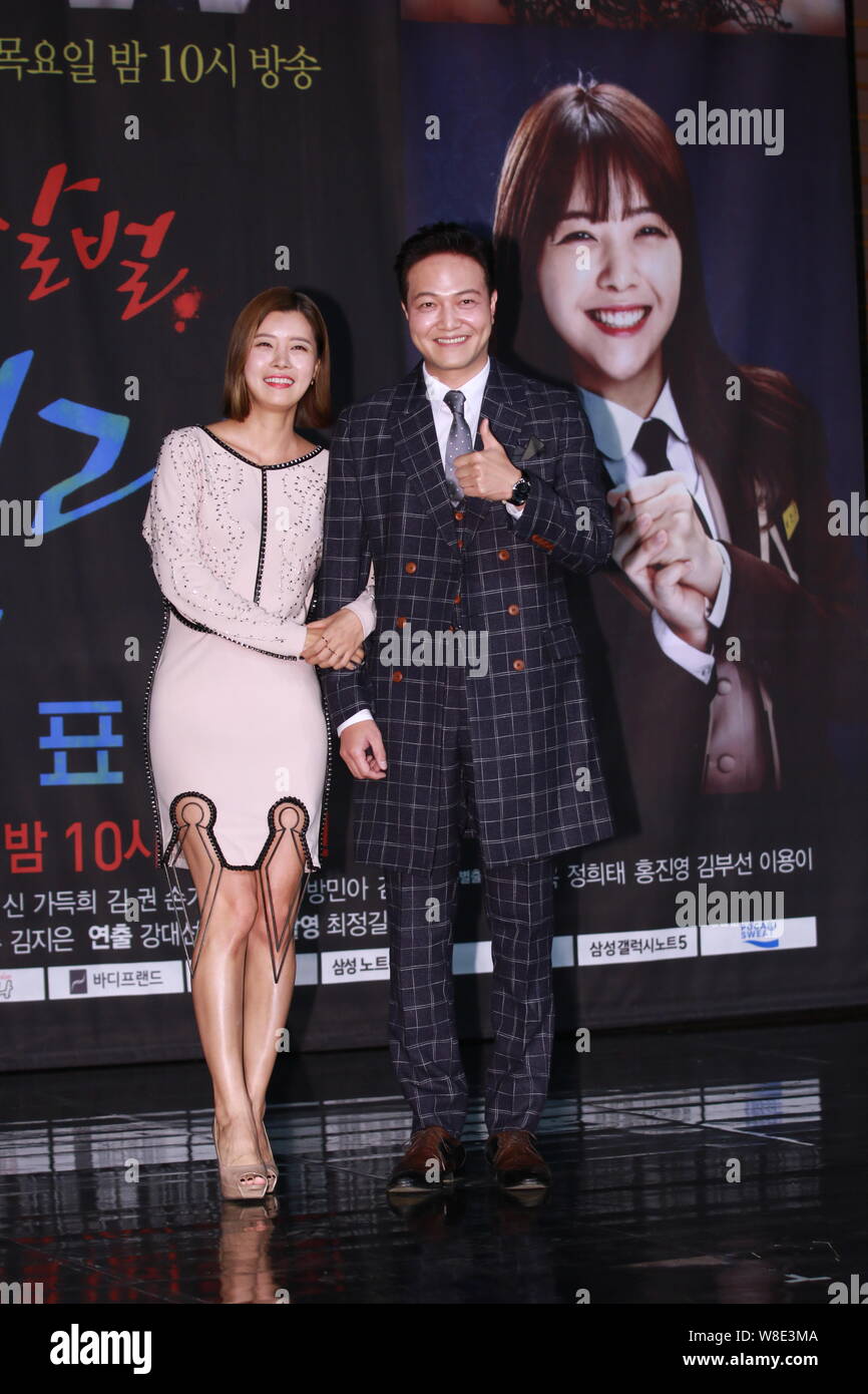 South Korean actress Yoo Sun, left, and actor Jung Woong-in attend a press conference for their new TV drama "Sweet, Savage Family" in Seoul, South Ko Stock Photo - Alamy