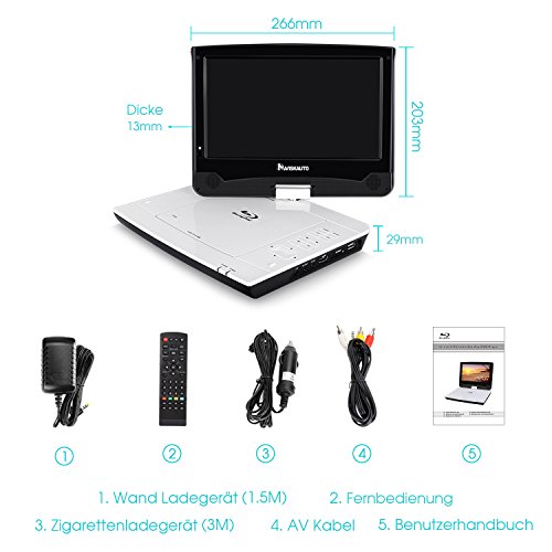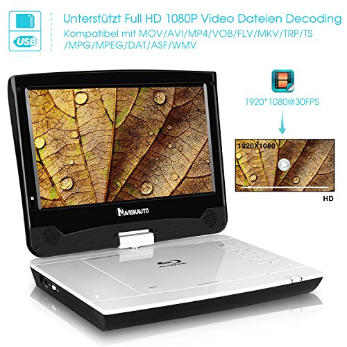 Купить dvd и blu-ray плееры NAVISKAUTO | NAVISKAUTO 10, 1 Zoll Tragbarer Blu-ray DVD Player 1024x 600 Full HD 1080P Video Auto Fernseher Monitor mit HDMI Anschluss Drehbarer Bildschirm Region 2 Schwarz+Weiß