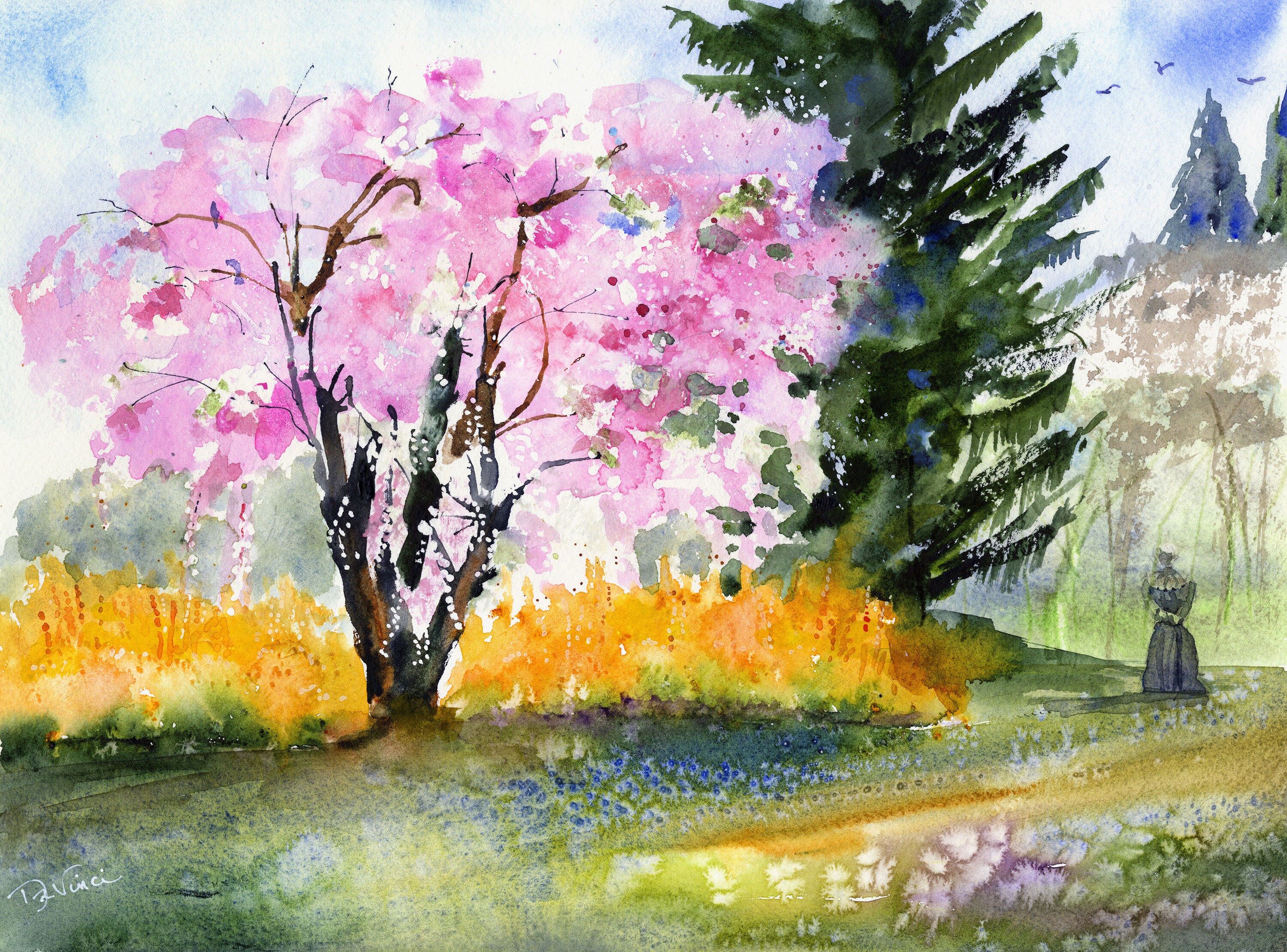 Kirschbäume Morris Arboretum Philadelphia Art Prints Clem DaVinci Aquarelle Forsythie blühend - Etsy.de