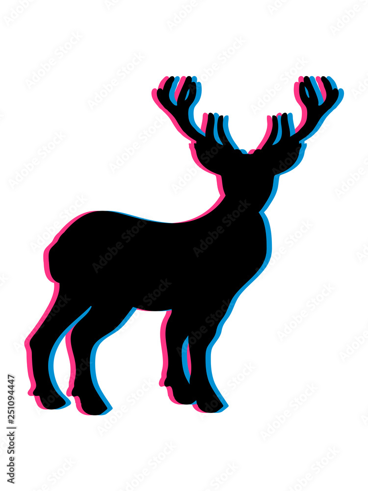 3d silhouette umriss stehen comic cartoon clipart hirsch geweih 2 hörner kopf trophäe jäger schießen reh wald wildnis jagen heimat design cool Illustration Stock | Adobe Stock