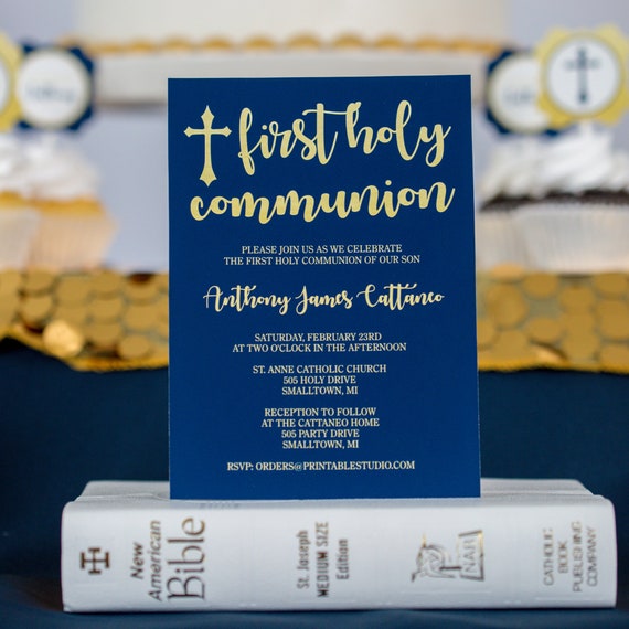 Kommunion-Einladung in Marine und Gold Druckbare Einladung zur ersten Kommunion Jungen-Erste Kommunion Einladung zur ersten Kommunion Jungen - Etsy Österreich