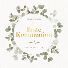 Einladung zur Kommunion | Grüne Blumenkrone | Goldene Akzente