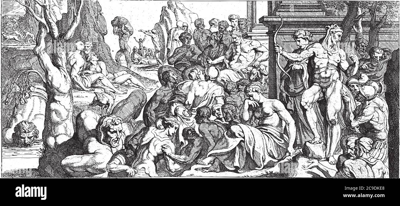 Odysseus in the Underworld, Odysseus visiting the Underworld. In the center sits Hades, the ruler of the underworld, with the three-headed dog Cerberu Stock Vector Image & Art - Alamy