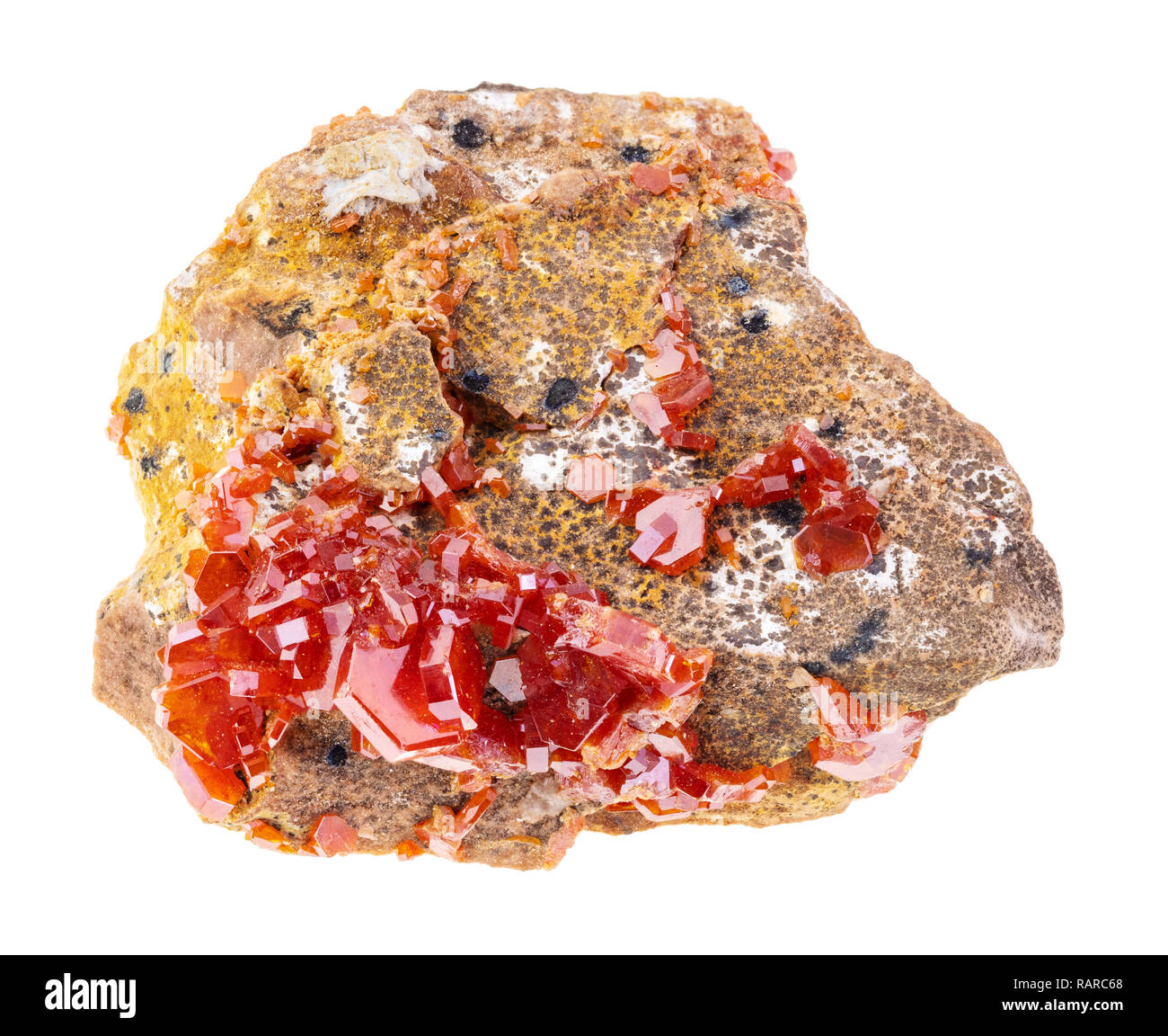 Macro photography of natural mineral from geological collection - Vanadinite crystals on raw rock (ore of vanadium) on white background Stock Photo - Alamy