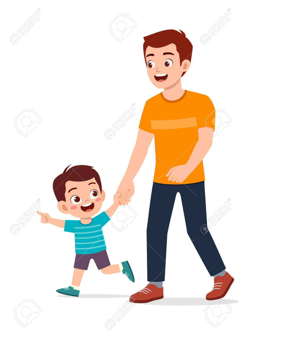 Junger Gutaussehender Vater, Der Hand Hält Und Mit Kind Spazieren Geht Lizenzfrei nutzbare SVG, Vektorgrafiken, Clip Arts, Illustrationen. Image 167735559.