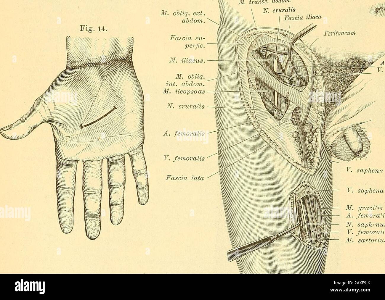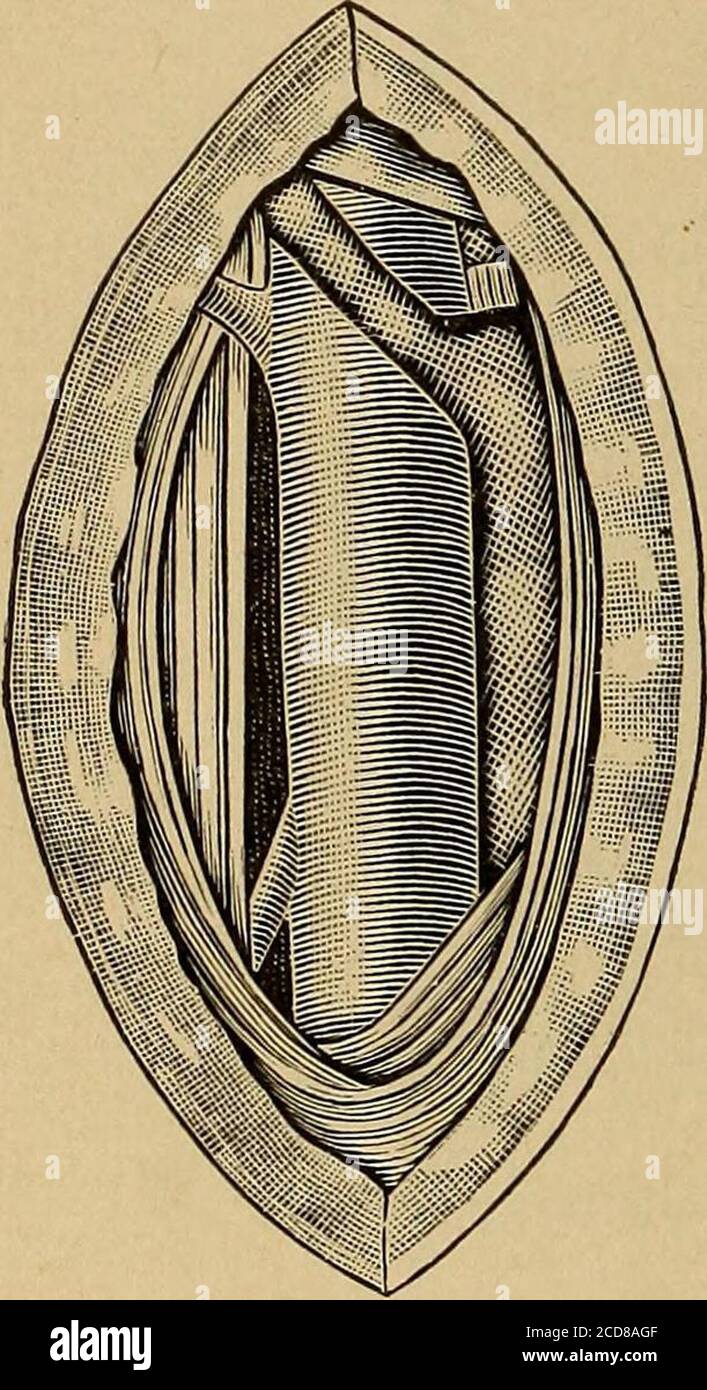 Kleinere und operative Operation, einschließlich Verbandungen . Trebeing etwas über der Mitte des Oberschenkels. Teilen Sie die Haut, super-ficial und tief fascia, und exposethe sartorius Musculus, der nach dem Bein gebeugt