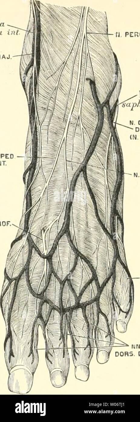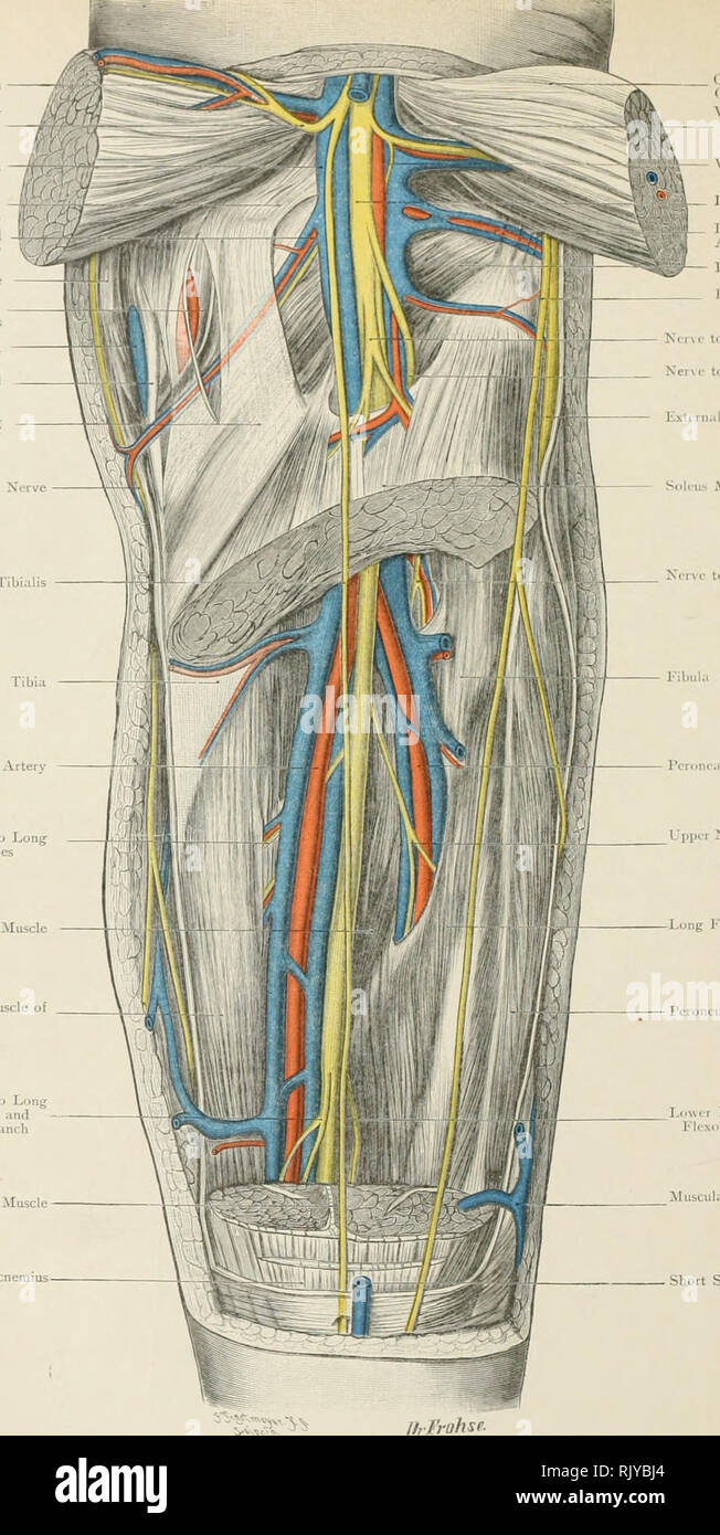 Sobotta 1909 fig.720 - Superficial nerves and veins of the posterior surface of the leg - English labels | AnatomyTOOL