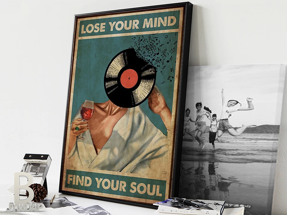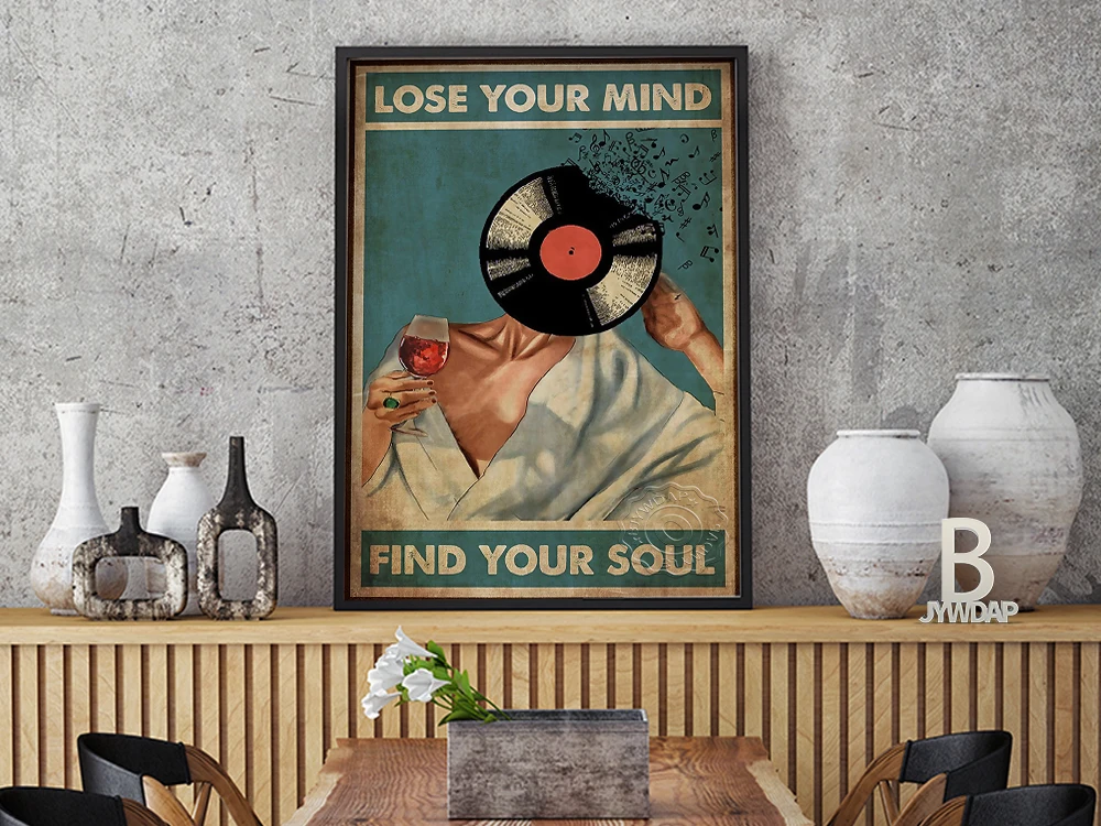 Lose your mind find your soul Canvas Poster Art Music And Wine Vintage Retro Canvas Wall Art Decor Poster Painting on Canvas Print Pictures Vintage ...