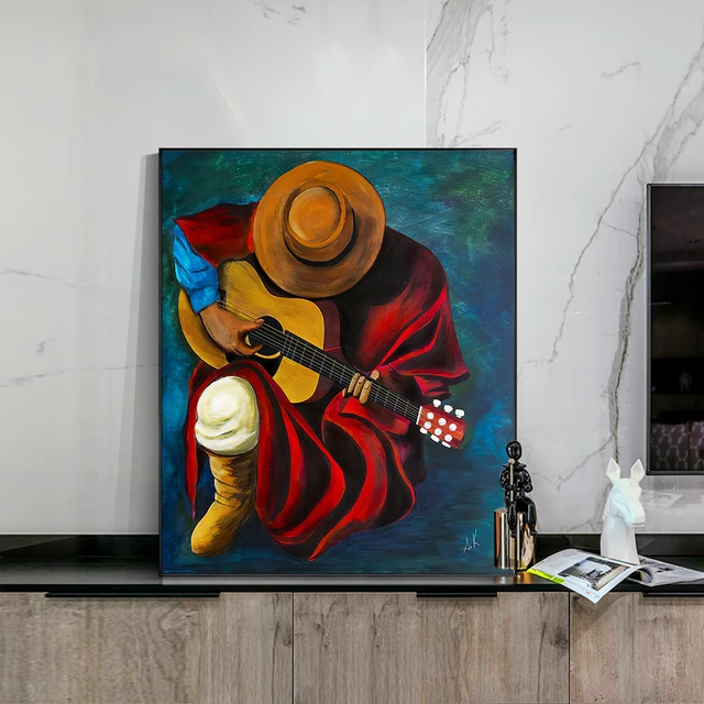 Vintage Art Poster Canvas Painting Mexican Music Playing Guitar Art Deco Room Aesthetic Poster Canvas Painting Posters And Prints Wall Art Pictures ...
