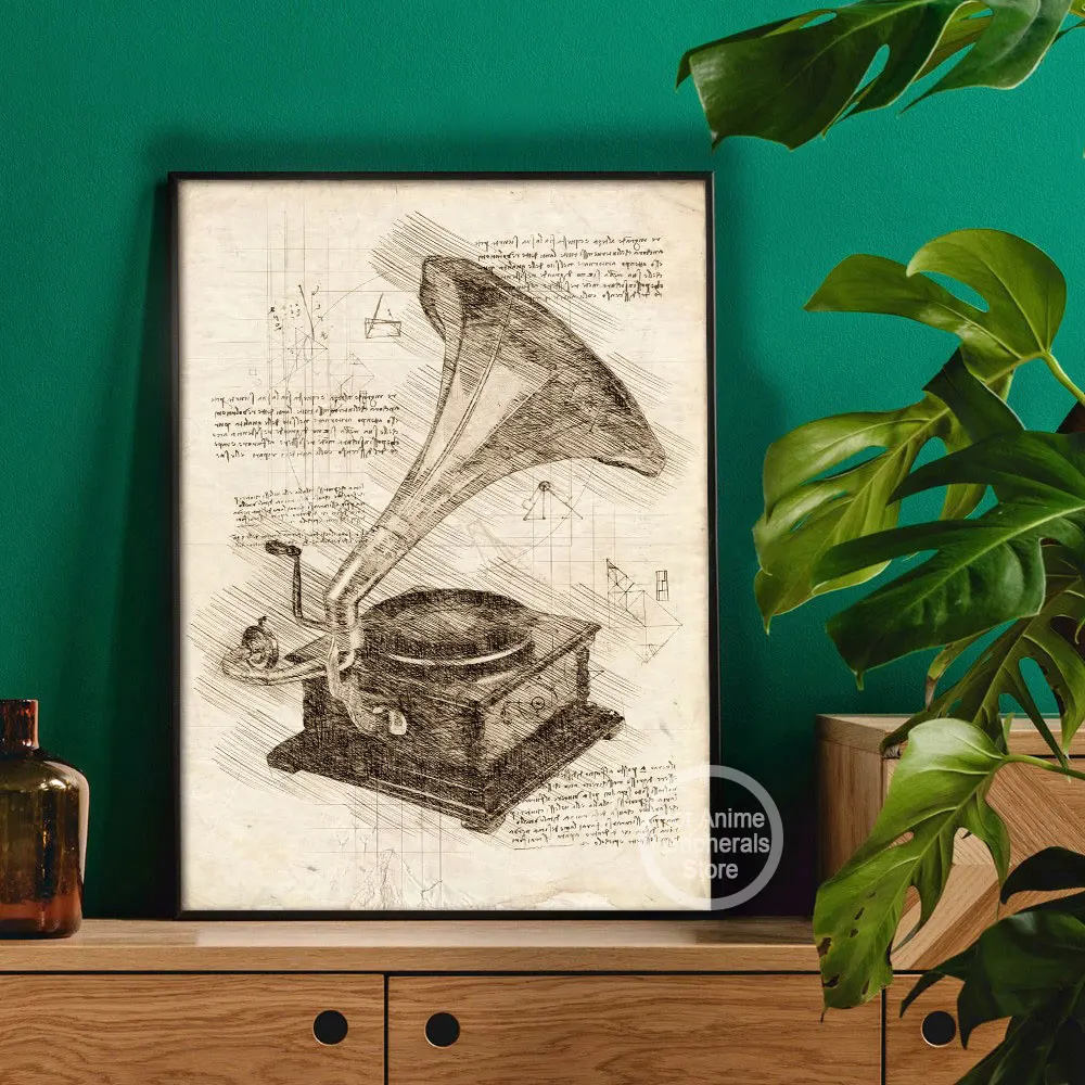 Posters Vintage Music Sheet Old Beethoven Grand Piano Canvas Painting Wall Art Gramophone Pictures for Living Room Decor Cuadros