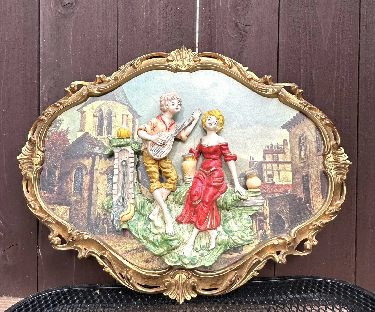 Vintage 3D Empire Figural Art Wall Plaque Ornate Frame Italy Playing Music