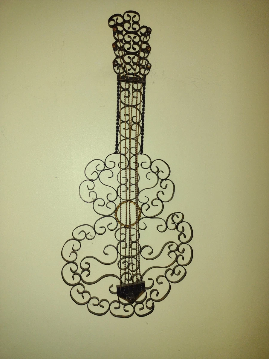 Vintage MCM Rustic Metal GUITAR Ornate Wall Decor Iron ...