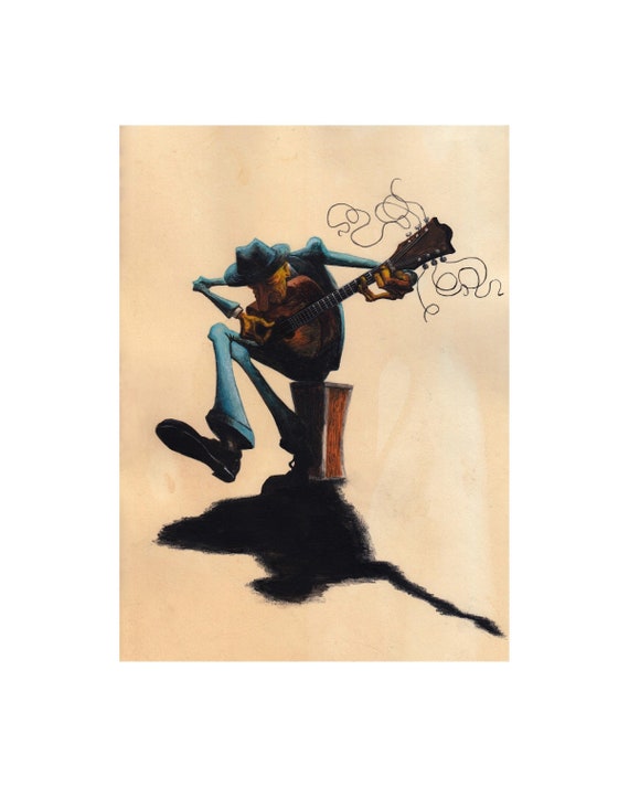 A3 Colour/ Limited Edition/ Old Blues Guitar Player/ Cartoon ...