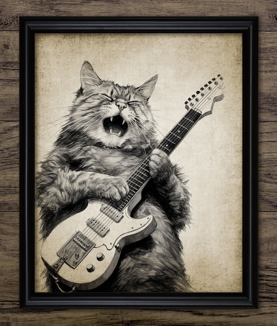 Cat Guitarist Wall Art, Printable Whimsical Music, Electric ...
