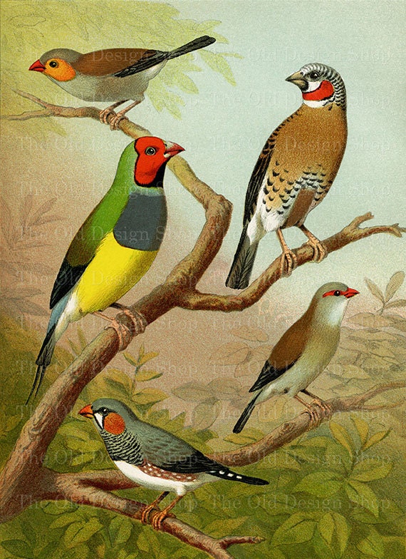 Vogel Motiv Vintage Pastelltöne einzigartiges Design Erdtöne Farbe Motiv gerahmt Weiß in A3 : Amazon.de: Home & Kitchen