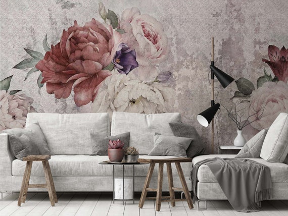Rosa Vintage Rosen Tapete Selbstklebende Tapete, ablösbare Tapete, temporäre Tapete, Tapete abziehen und aufkleben 457 - Etsy.de