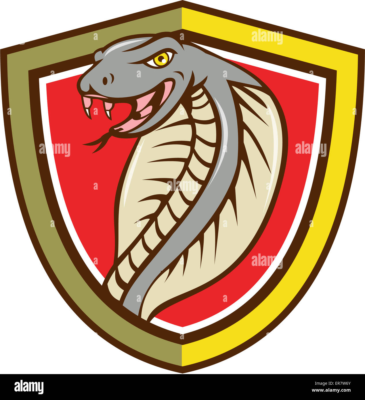 Illustration einer Cobra Viper Schlange Schlangenkopf mit Zunge heraus angreifen Satz innen Schild Wappen auf isolierte Hintergrund getan im Cartoon-Stil Stockfotografie - Alamy