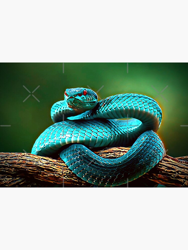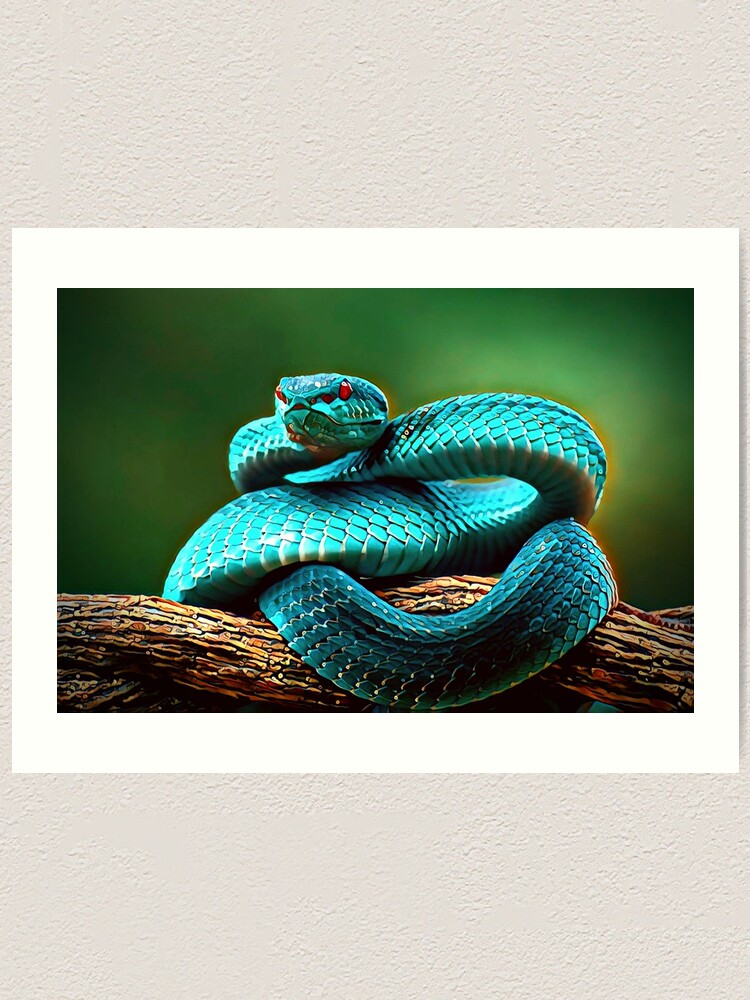Scharfer Blick der blauen Insularis-Viper-Schlange - Fauzan Maududdin als Kunstdruck oder Gemälde.