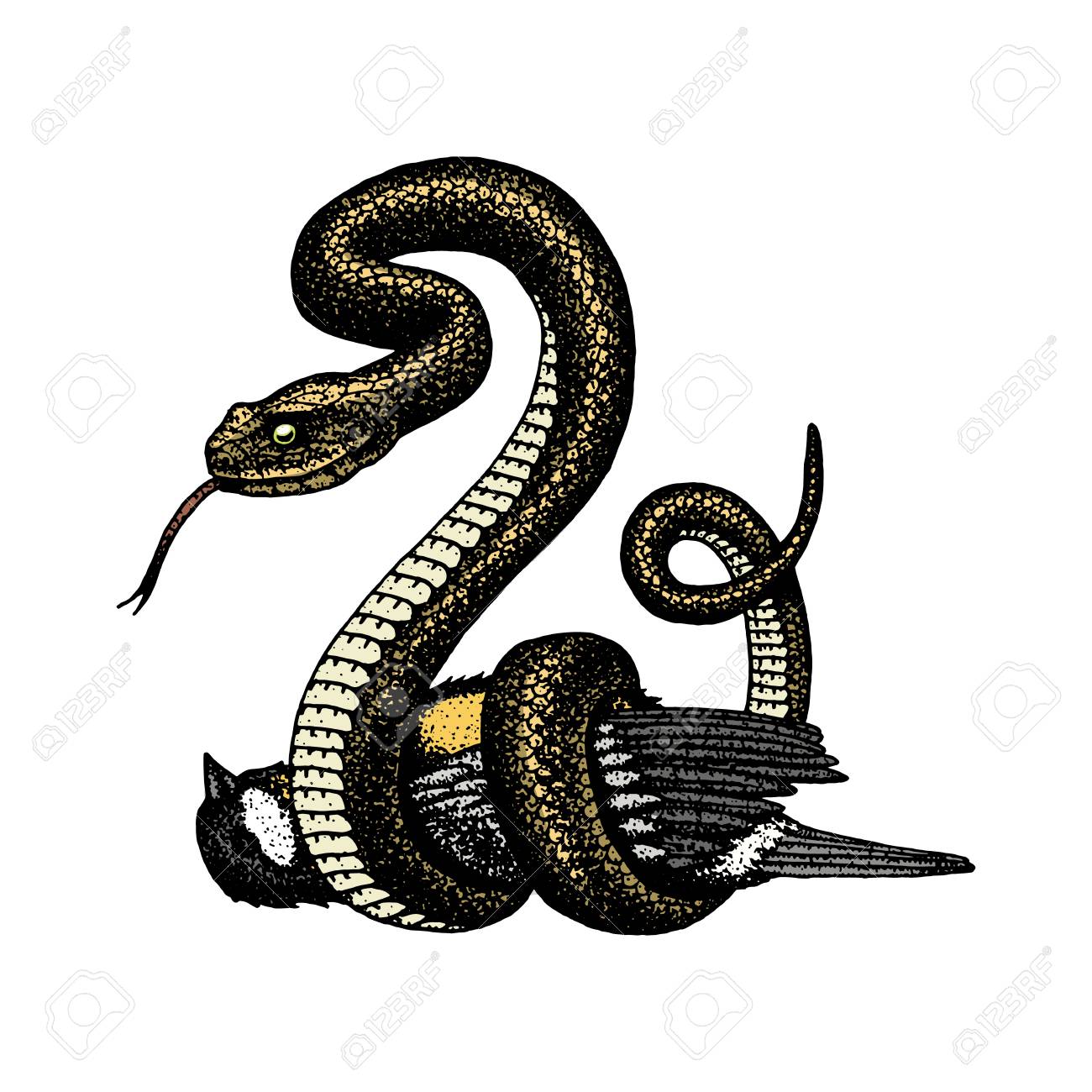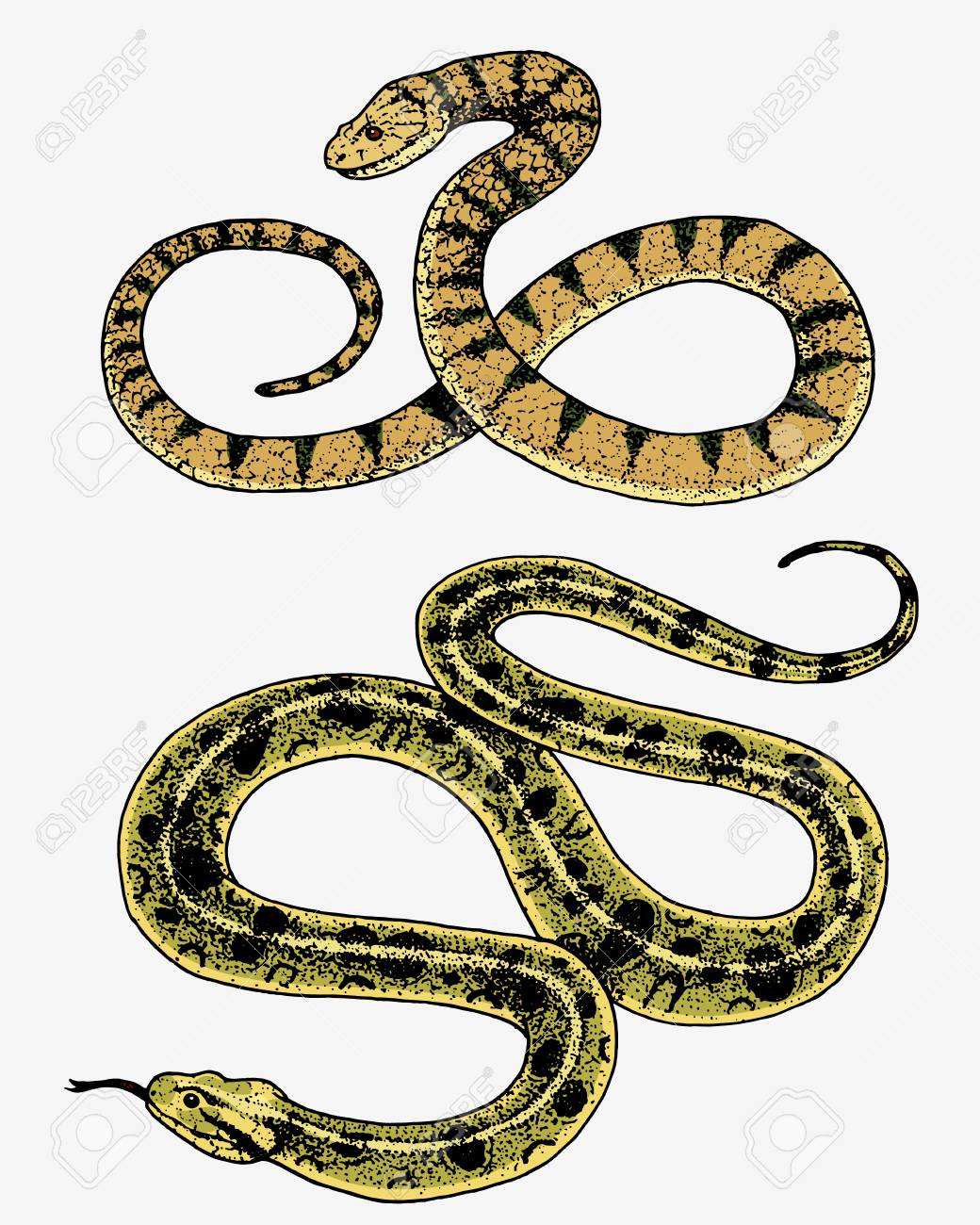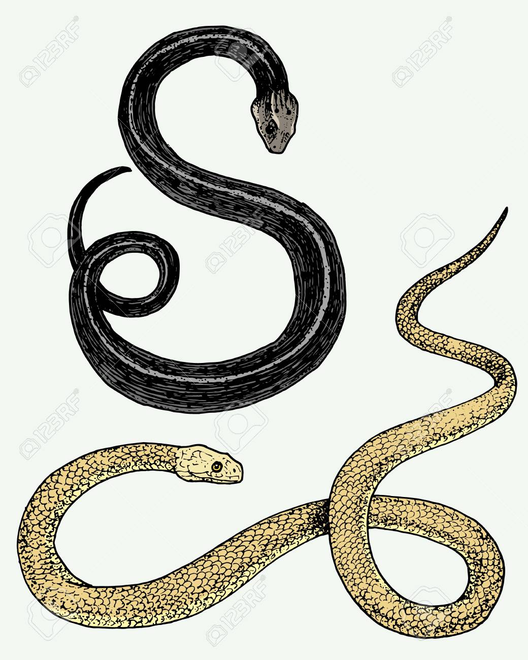 Viper Schlange. Schlange Kobra Und Python, Anakonda Oder Viper, Königlich. Gravierte Hand Gezeichnet In Alte Skizze, Vintage-Stil Für Aufkleber Und Tattoo. Ophidian Und Asp. Lizenzfreie Fotos, Bilder und Stock Fotografie. Image 91367305.