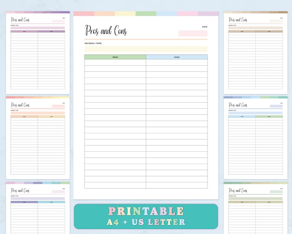 Druckbare Vor und Nachteile Liste, Sofortiger Download, Print at home Planner Seiten, Life Organizer Vorlagen, Pro und Con Print Vorlage - Etsy.de