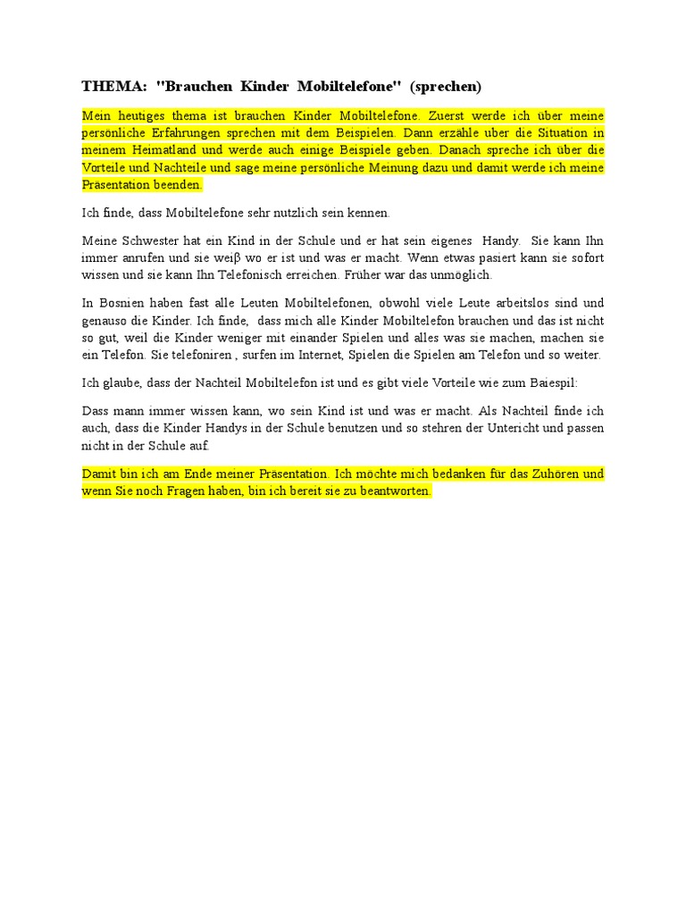 THEMA ''Brauchen Kinder Mobiltelefone'' | PDF