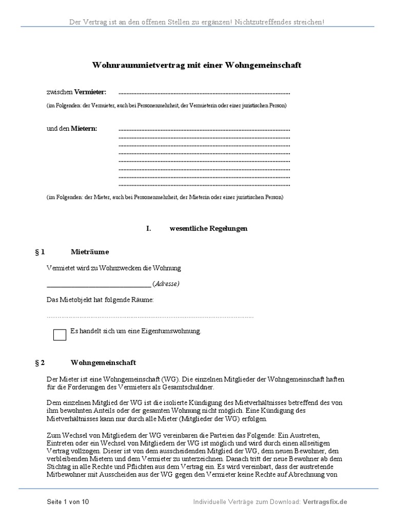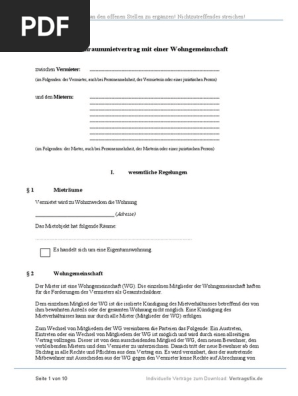 Mietvertrag für eine Wohnung / Mietvertrag für eine Einliegerwohnung / Mietvertrag für ein Einfamilienhaus / Mietvertrag für Zimmer - Muster- Vorlage kostenlos als PDF & Word downloaden oder individuelles Dokument erstellen