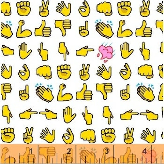 Cotton Emoji Hand, Smiley, Messages, TEXT ME, SMARTPHONE, Hand, Finger, Hand Sign, Sewing, Cotton Fabric, Fabric, 0.50 M - Etsy Norway