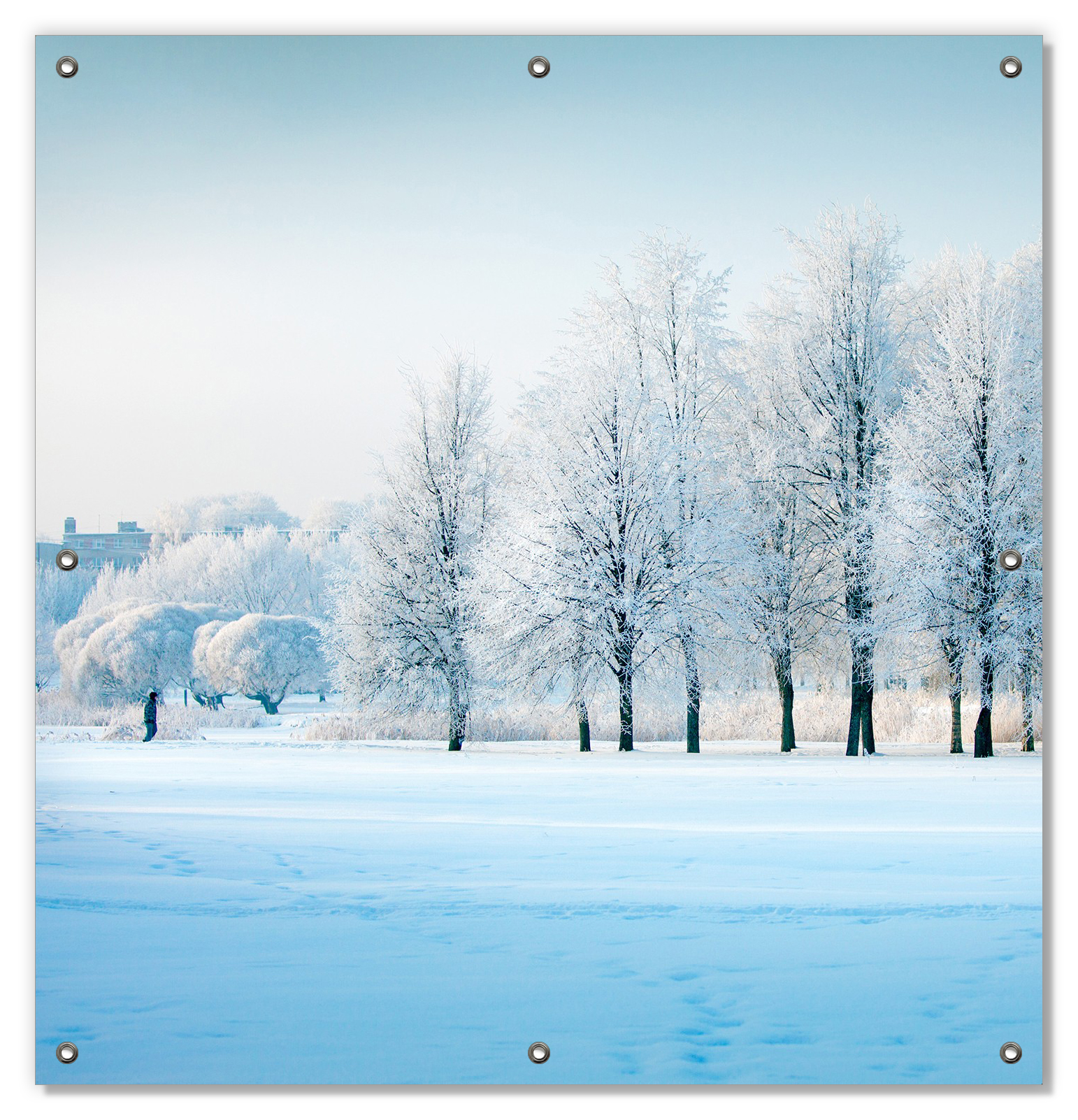 Lichtschutzbild Verschneite Bäume in einer Winterlandschaft | Wallario.de