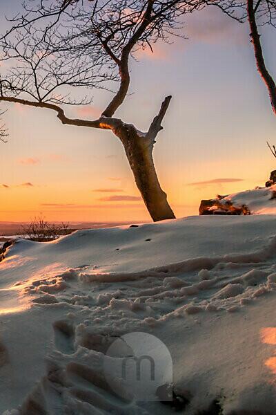 Bildagentur | mauritius images | Beautiful winter landscape on the jag in Taunus, winter in the forest, beautiful view over the nature of Germany