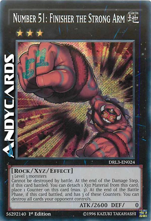 DRL3-EN024 Number 51: Finisher the Strong Arm Secret Rare 1st edition Mint YuGiOh Card :: Unicorn Cards - YuGiOh!, Pokemon, Digimon and MTG TCG Cards for Players and Collectors.