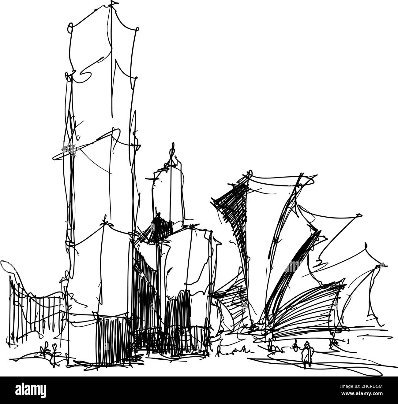 Architektur Skizzenbuch - Schwarze und weiße Stadtzeichnung