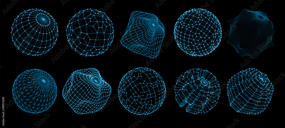 3d futuristic sphere shapes. Planet globe mesh hologram, round ...