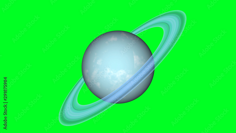 Uranus planet with satellites 3D rendering on green screen. Blue ...