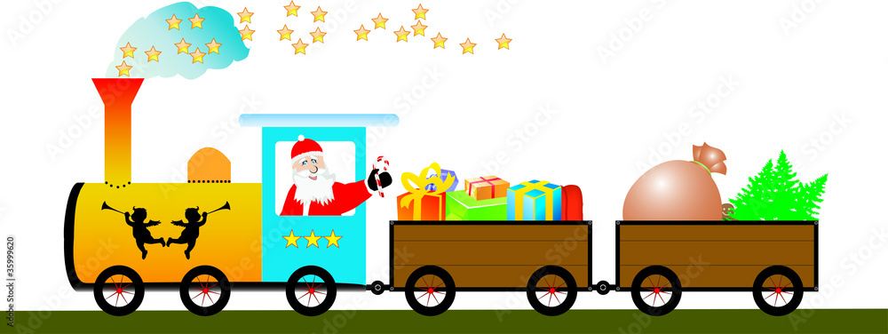 Nikolaus im Zug mit Weihnachtsbaum und Geschenken Vector Stock ...