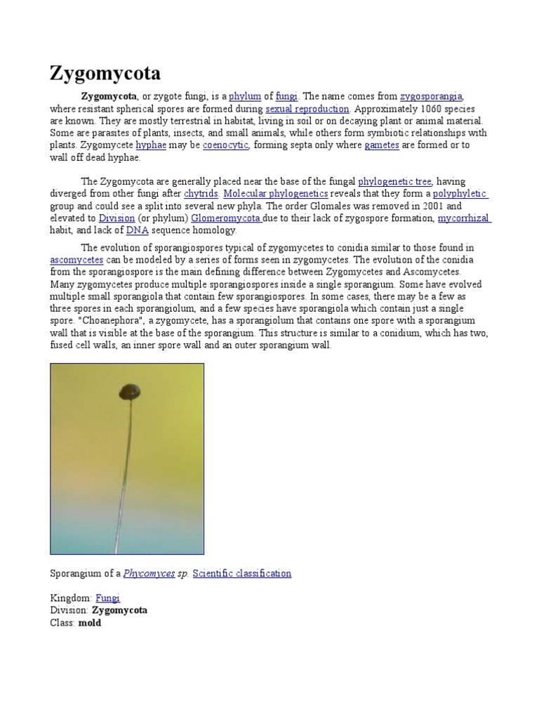 Zygomycota, or Zygote Fungi, Is A Phylum | PDF | Fungus | Mycology