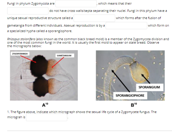 Solved Fungi in phylum Zygomycota are which means that their | Chegg.com