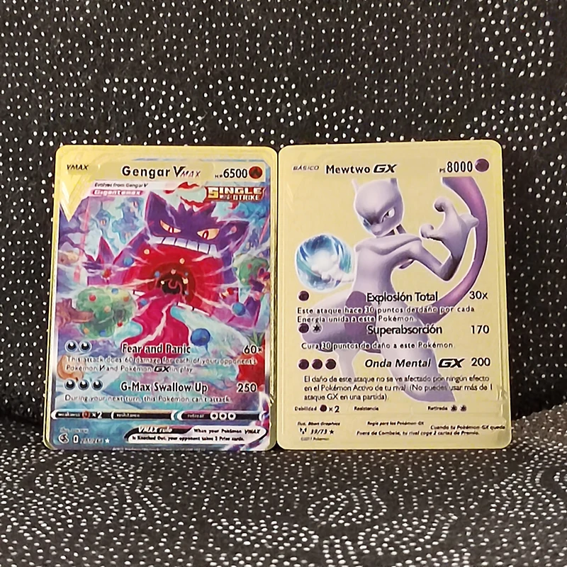 8.8*6,3 cm Nach Mewtwo Alte Mew Metall Karte Ultra Rare Metall Gold Überzogene Karte Vmax Karte DX GX sammlung Geschenk spielzeug Spiel