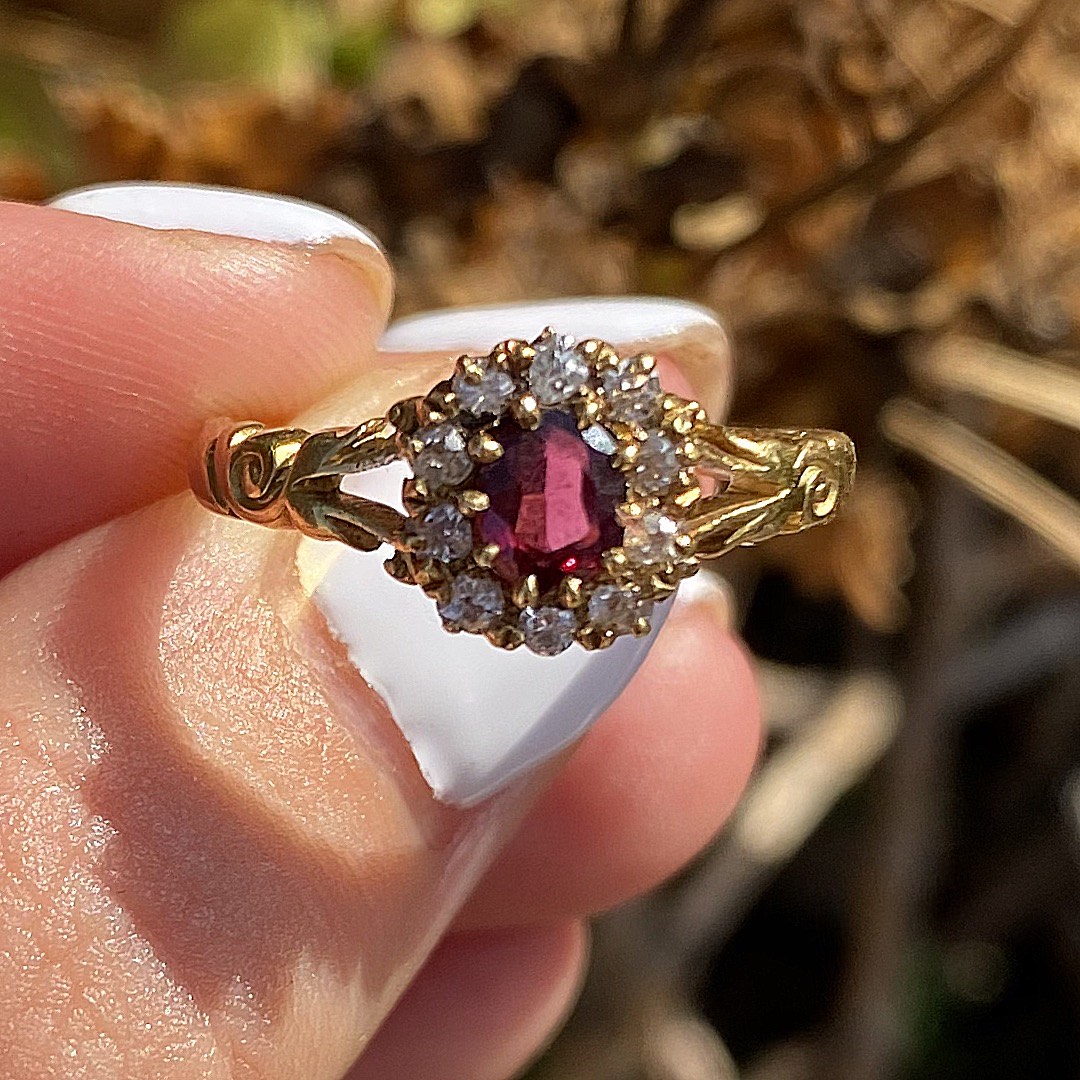 Vintage, Ruby and Diamond Cluster Engagement Ring, 18ct Yellow Gold – Antique Ring Boutique
