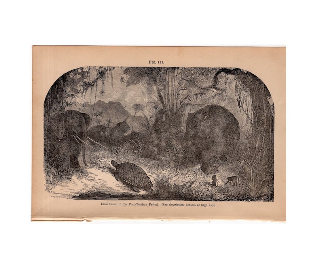 C. 1877 PRÄHISTORISCHE TIERE DRUCK original antiker Druck ausgestorbene Tiere prähistorische Szene Post-Kulisse - Etsy.de