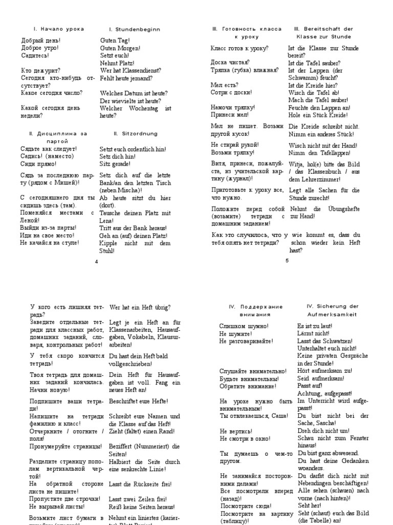 Фразы для урока немецкого в школее | PDF
