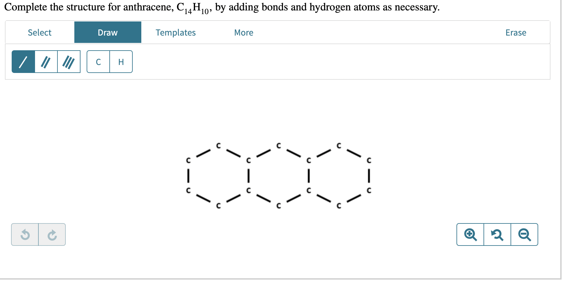 SOLVED: Complete the structure for anthracene; C14H10, by adding bonds and hydrogen atoms as necessary.