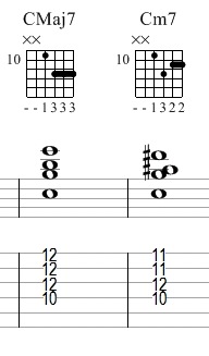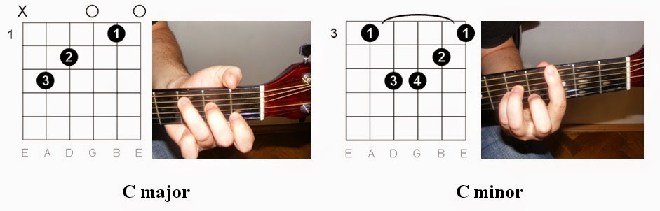 Learning The Basics of Guitar: What's the difference between a C7, Cm7 and Cmaj7 chord?
