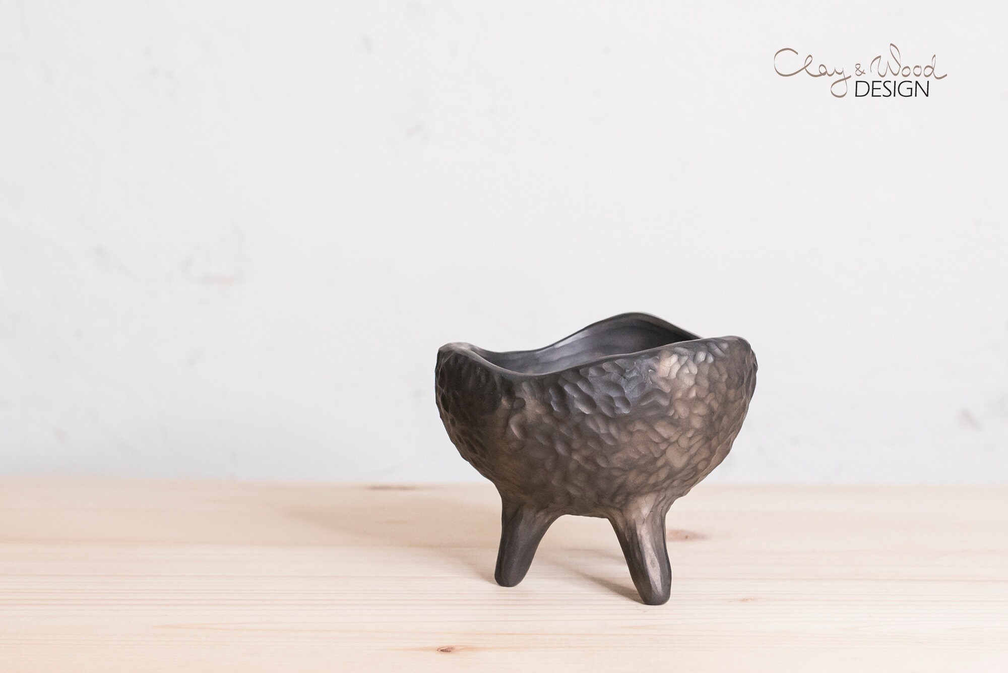 Black Ceramic Bowl on Three Legs Pinch Pot Small and Textured Dish ...