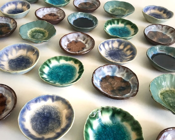 Ceramic Catchall Bowl Pinch Pot in 6 Designs. Crackle Glass Center ...