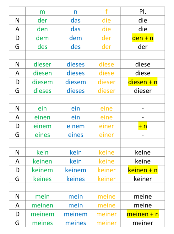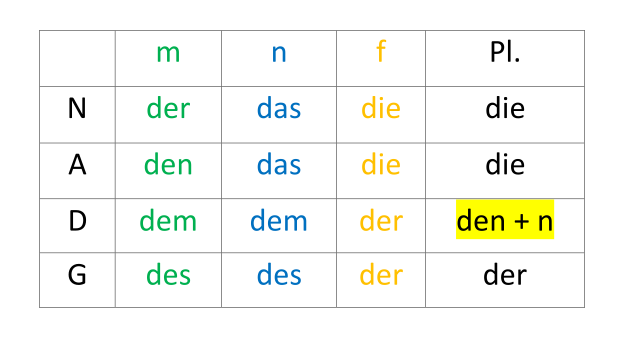 Склонения артикль der | Все формы, таблицы, речевой вывод | Netzverb Словарь